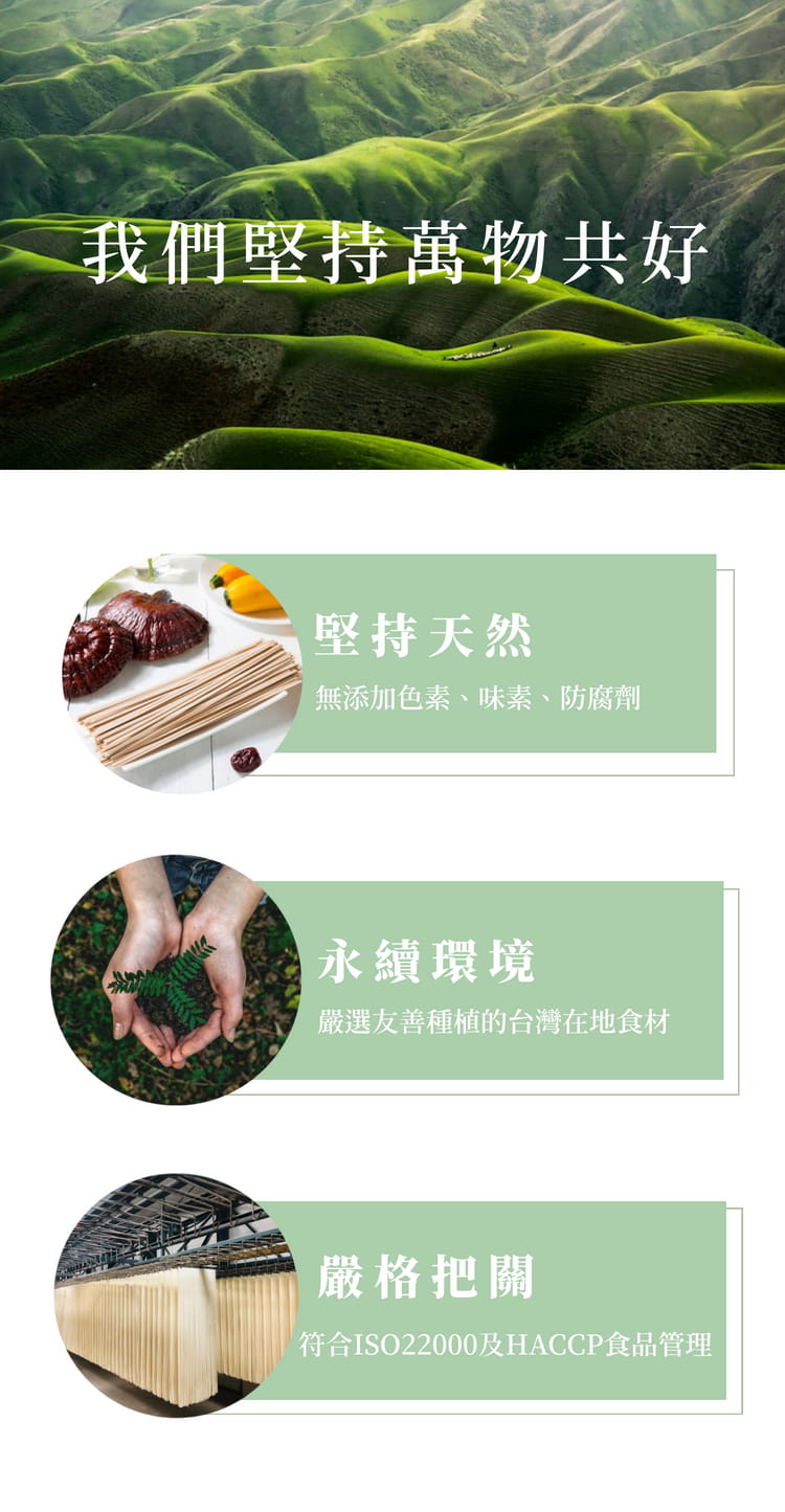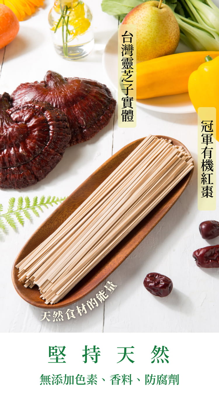 美國小麥粉、台灣靈芝子實體萃取粉、台灣有機紅棗、台灣食鹽
